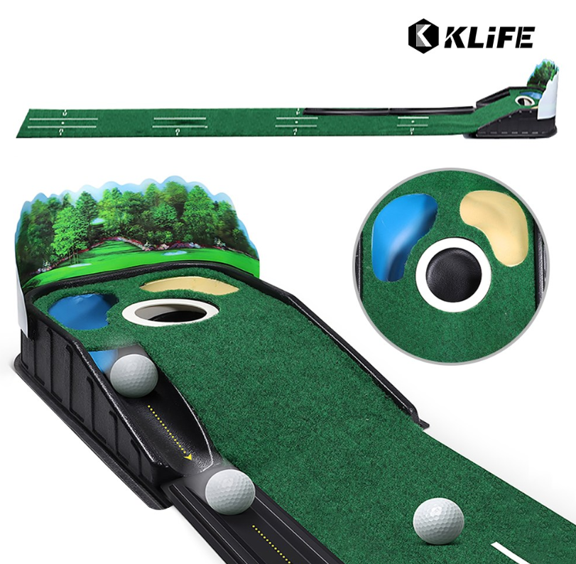 KLIFE 골프 퍼팅연습기 무소음 자동리턴 실내 연습 매트 스윙 퍼팅매트 볼가림막 - 퍼팅연습기 |