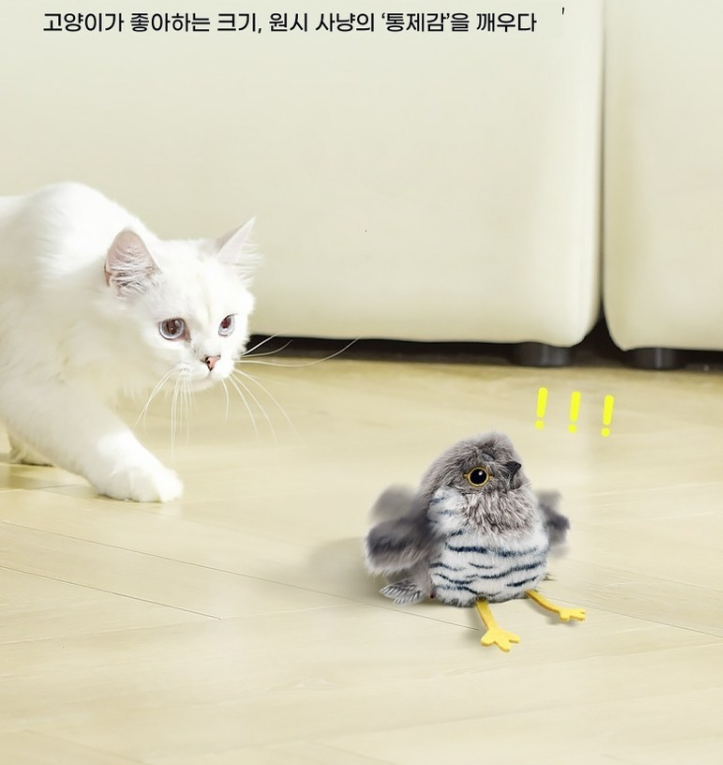 특히 날개 퍼덕이는 모션이 실제 새와 비슷하다는 반응이 많았다. 단순히 빛이나 소리로만 자극하는 제품과 달리 움직임이 자연스러워 몰입도가 높았다는 후기가 있었다.