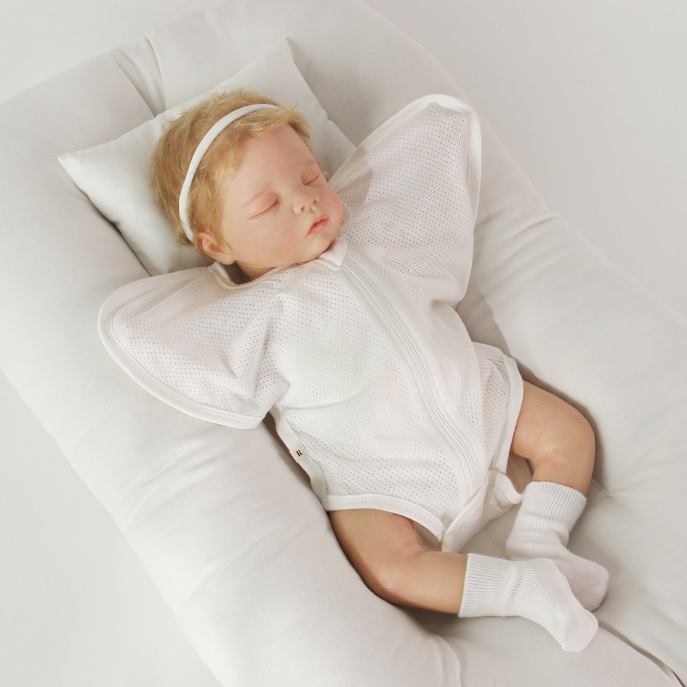 통기성 좋은 무형광 메쉬 원단으로 여름철 아기 숙면을 돕는 속싸개,