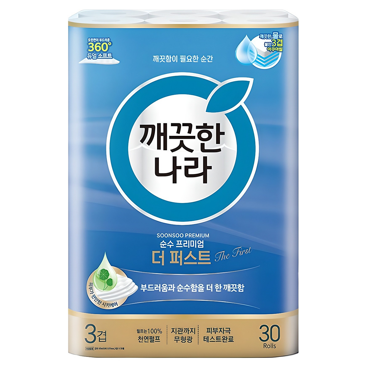깨끗한나라 순수 프리미엄 더 퍼스트는 기본에 가장 충실하면서도 프리미엄의 가치를 더한 제품이다. 화장지 본연의 기능인 부드러움과 흡수력을 극대화했을 뿐만 아니라, 100% 천연펄프와 무형광이라는 안전성까지 확보하여 사용자의 건강을 최우선으로 고려했다.