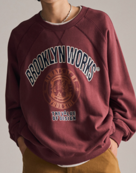 베이직한 매력과 포인트를 동시에 잡은 브루클린웍스 맨투맨